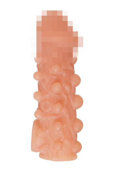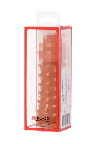 Насадка KOKOS реалистичная с дополнительной стимуляцией, TPE, телесная, 15.6 см с крупными пупырышками