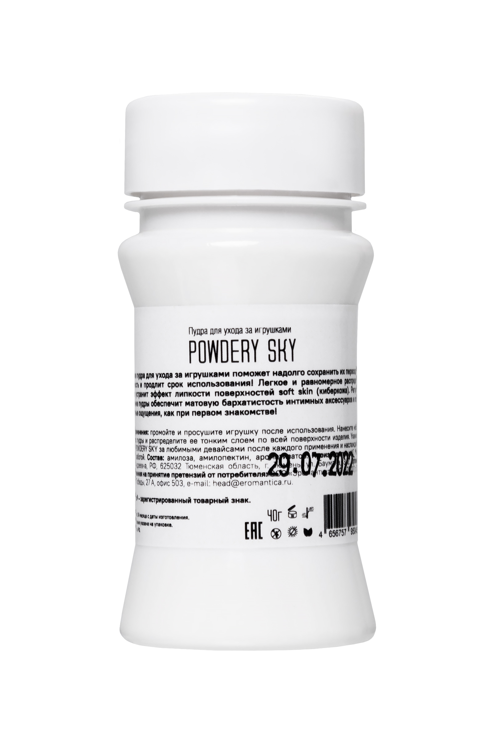 Невесомая пудра Эромантика с ароматом мятной свежести для ухода за игрушками поможет надолго сохранить их первозданную эластичность и продлит срок использования! Легкое и равномерное распределение средства устранит эффект липкости поверхностей soft skin (киберкожа). Регулярное применение пудры обеспечит матовую бархатистость интимных аксессуаров и подарит комфортные ощущения, как при первом знакомстве! Способ применения: промойте и просушите игрушку после использования. Нанесите небольшое количество пудры и распределите ее тонким слоем по всей поверхности изделия. Ухаживайте с помощью Powdery SKY за любимыми девайсами после каждого применения и наслаждайтесь ее приятной заботой.